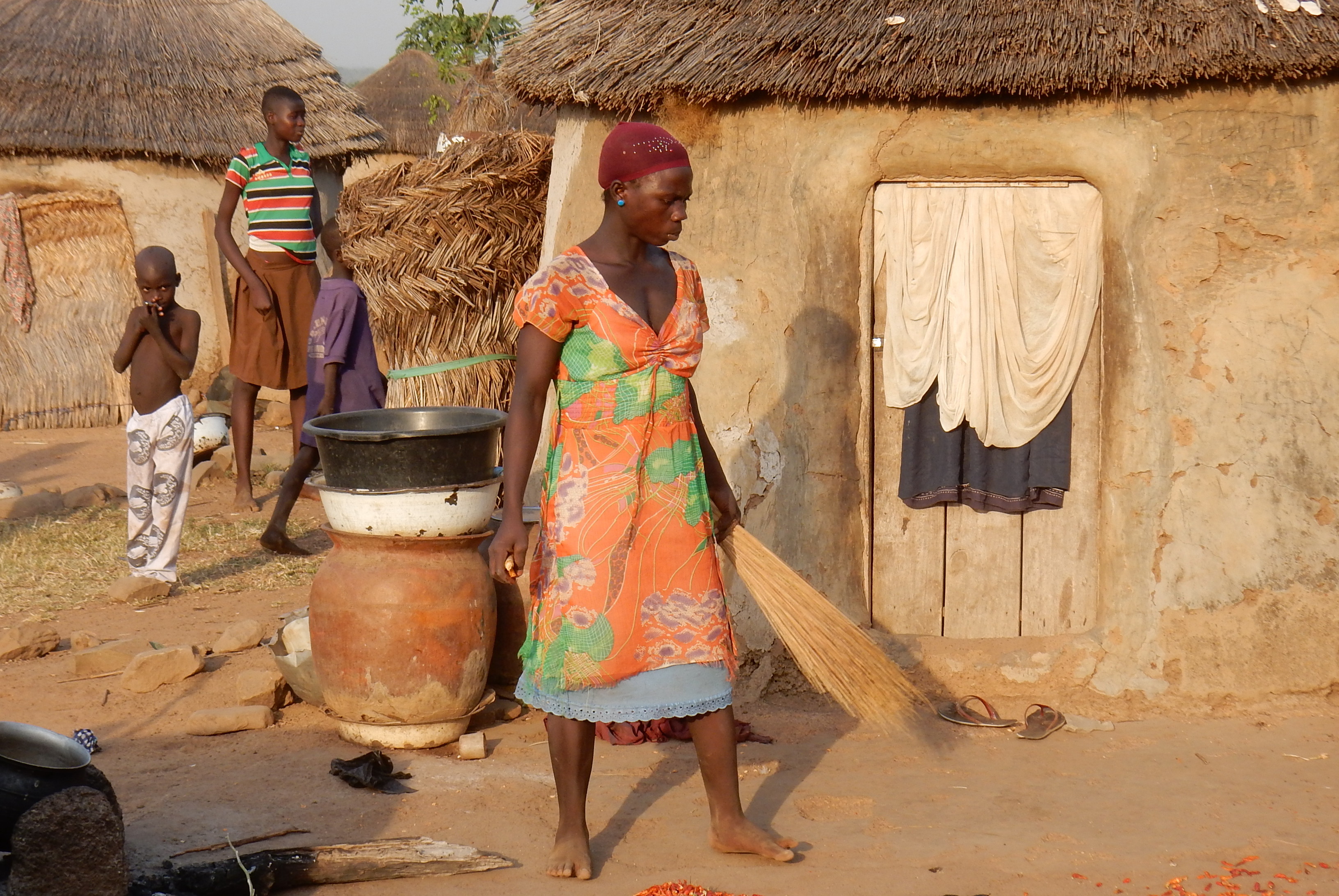 Les cases ont un toit supporté par un large pilier interne. C’est aussi le lieu de rassemblement des anciens du village. Dans l’un de ces villages nous rencontrerons une importante communauté de…sorcières, qui ont été exilées de leurs villages d’origine. Elles nous parleront de leur vie au sein de la communauté villageoise, ainsi que de la protection qu’elles reçoivent d’un certain fétiche chargé de « laver » leurs esprits de toutes intentions maléfiques !